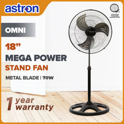 Astron OMNI 18" Industrial Electric Stand Fan - Black | Metal Blade | Heavy-Duty Cooling | Durable & Adjustable