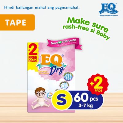 EQ Dry Small (3-7 kg) - 62 pcs x 1 pack (62 pcs) - Tape Diapers