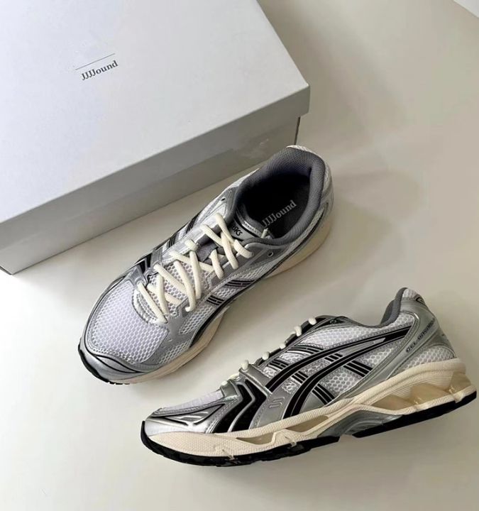 HajimeSorayama element JJJJOUND X GEL KAYANO 14 joint sports running shoes for men and women are black, silver and white.