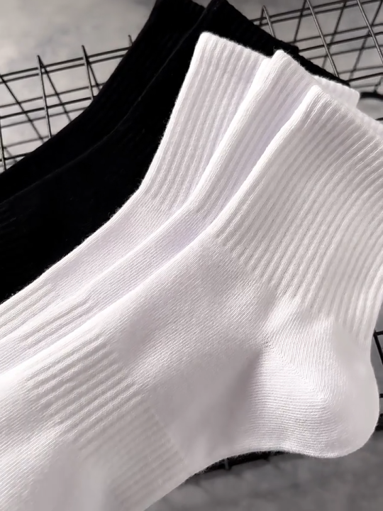 5/10pairs Socks Mid-length Solid color Sports White and black Deodorant Sweat-wicking