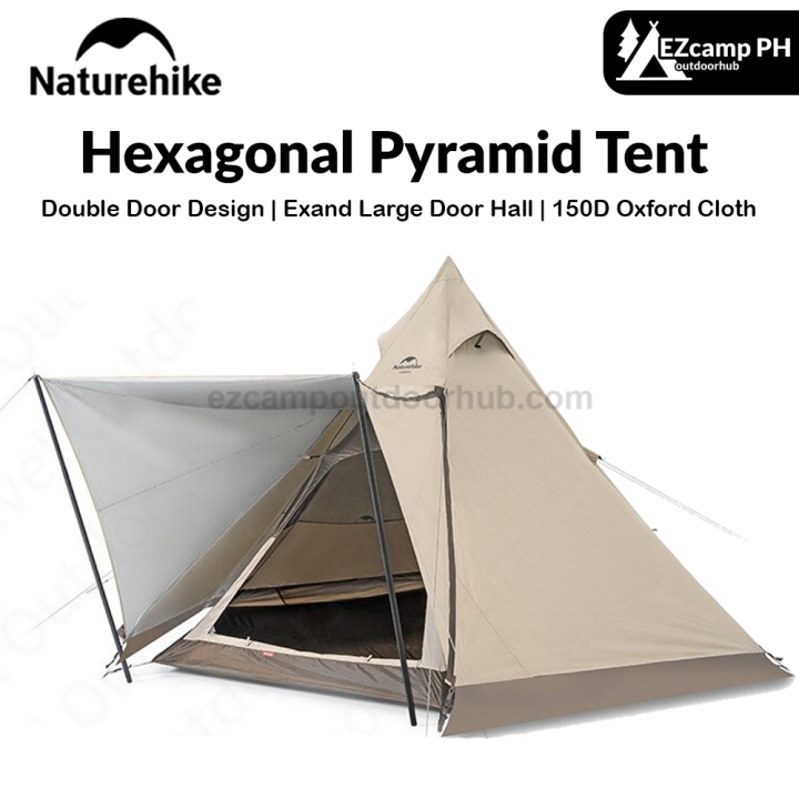 Naturehike RANCH Series Hexagonal Pyramid Tent Tipi Style Camping Tent for 3 to 4 Person with Skirt Waterproof Hexagon 2 Door Hall Outdoor Shelter Bell Teepee TP with Optional Groundsheet Mat Add-on Nature Hike