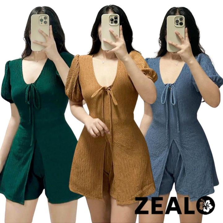 ZEALO Cadence Puff Sleeves Peplum Drawstring Top and Shorts Terno Coordinates Terno Bark Crepe
